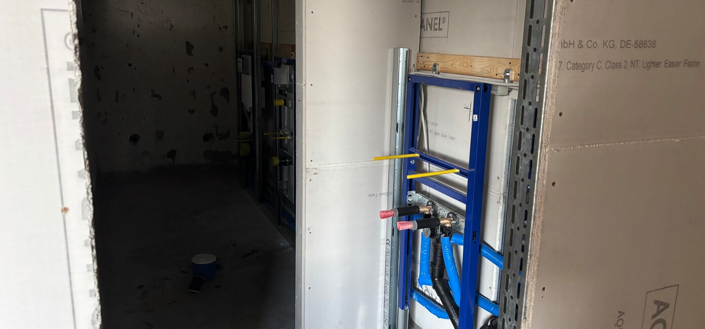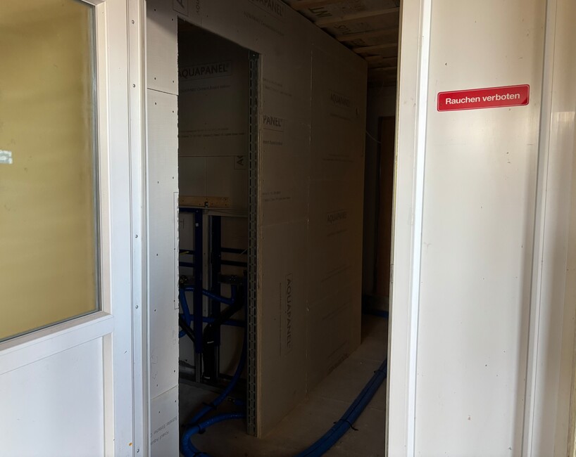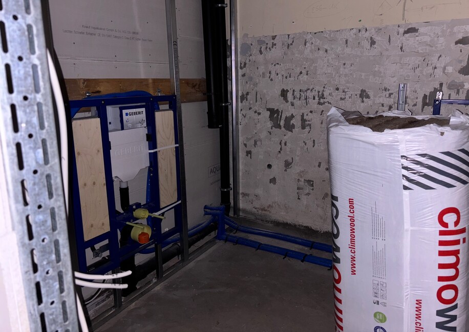 Auch die ersten Fortschritte im Sanitärbereich können sich sehen lassen. Schon ganz bald entstehen hier drei moderne WC Räume.